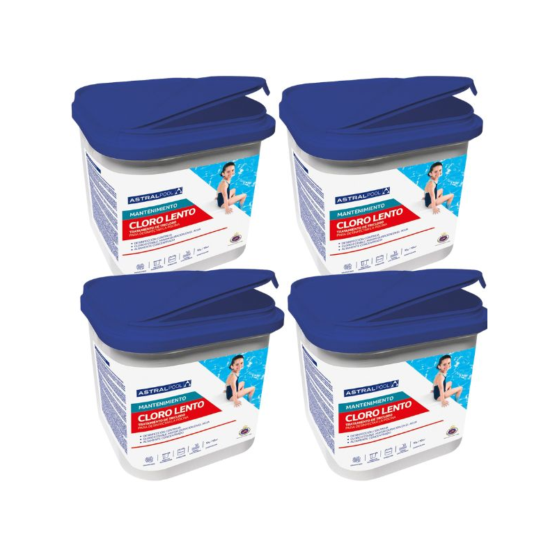 Tricloro granulado AstralPool, cloro lento con un 90% de cloro útil, ideal para la desinfección continua y el mantenimiento invernal de piscinas. Elimina zonas verdosas, algas y bacterias de forma eficaz.