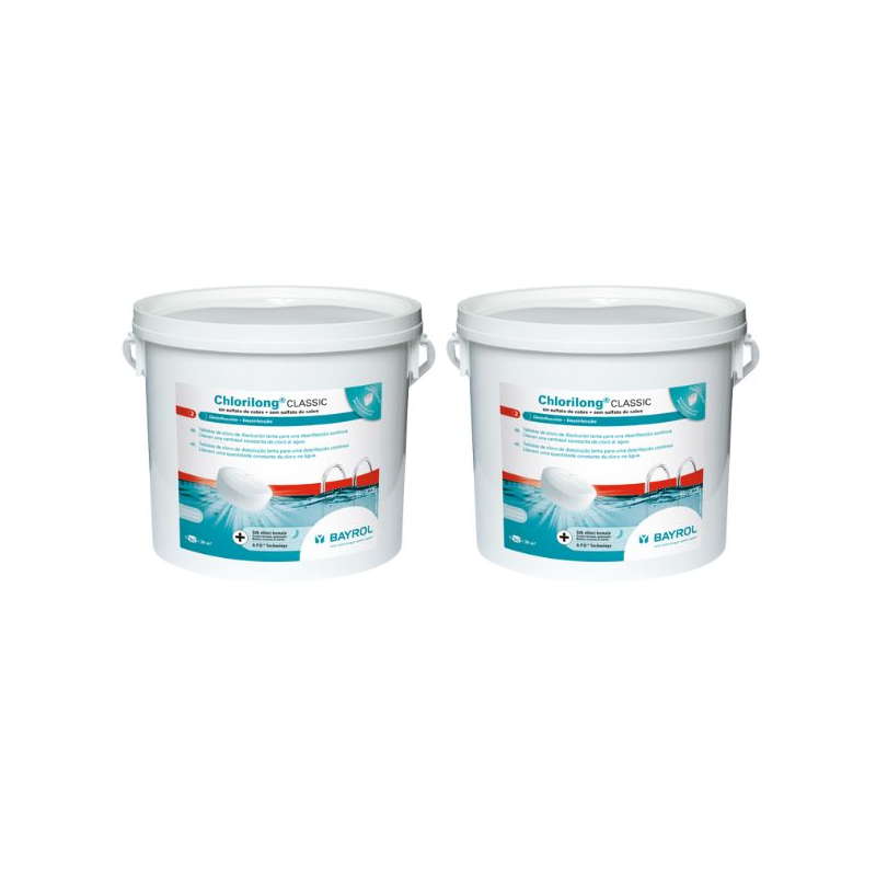 Las tabletas Chlorilong® CLASSIC de Bayrol (antes Chlorilong® 250) están diseñadas para garantizar una cloración permanente, eficaz y estable en todo tipo de piscinas. Cada tableta de 250 g libera cloro de manera progresiva gracias a la innovadora tecnología de compresión A.P.O.®, que asegura una disolución muy homogénea y un aporte constante de desinfectante.