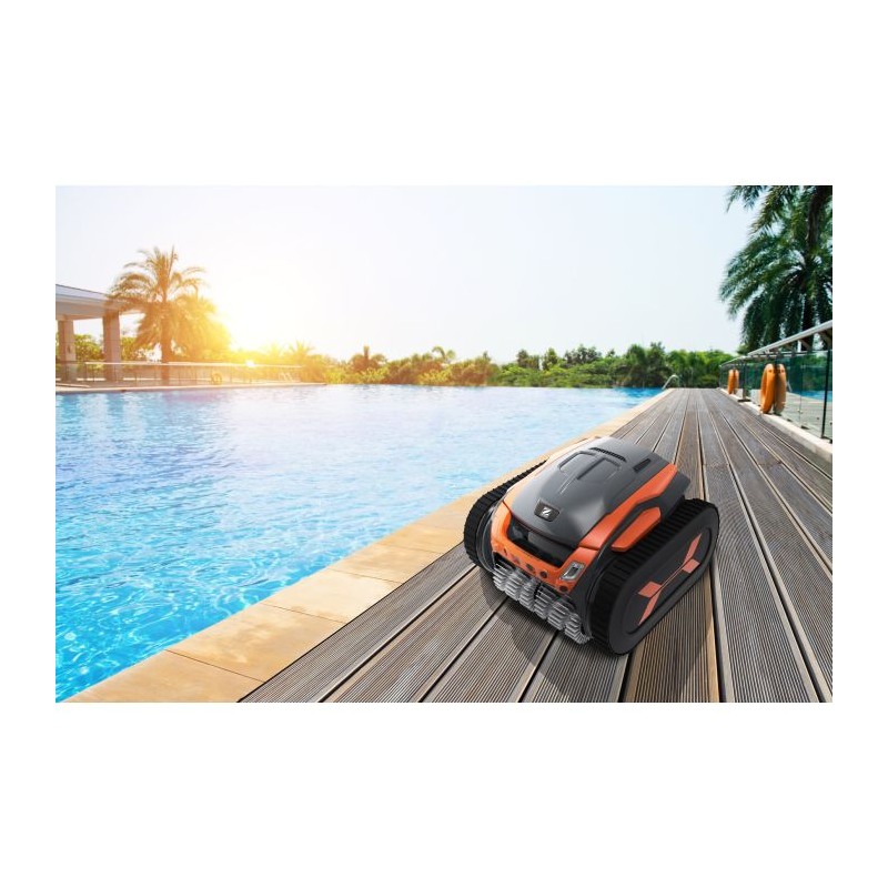 TRX 8700 iQ Vortrax es un limpiafondos automático profesional para piscinas con pared rígida de hasta 25 m. Incorpora sensores ultrasónicos, navegación inteligente Nav System™, 3 motores y tracción por orugas. Limpia fondo, paredes y línea de flotación con filtración doble 150 + 60 µ y control mediante app y mando Bluetooth.